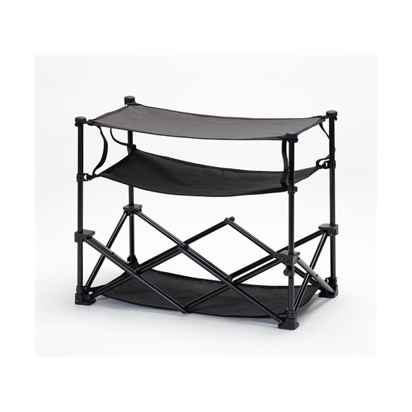 Hopfällbar skohylla för förvaring av skor i förtältet. Kan fällas ihop och packas ner i medföljande påse – därmed tar den minimimalt med plats när den inte används. Aluminiumstativ. Material: Polyweave (60 % PVC-bestrykning / 40 % polyester). Mörkgrå.