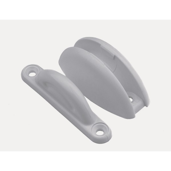 Dörrstopp som tack vare utformningen kan hålla dörrar med olika vinklar mot fordonsväggen. Mått väggdel: 65x30 mm. Skruv c/c 44 mm. Mått dörrdel: 75x14 mm. Skruvhål c/c 62 mm.