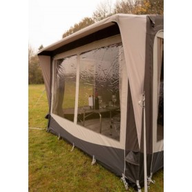 Premiummaterial: Huvuddelen och taket är tillverkade av exklusiva, andningsbara teltex-material som minimerar kondens och skapar ett behagligt klimat oavsett säsong.