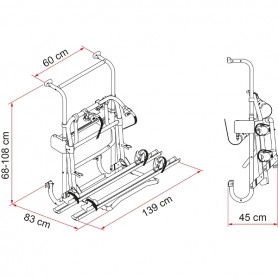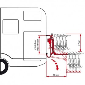 Carry Bike Lift 77 är ett unikt cykelställ som är höj och sänkbart. Ett cykelställ som kan sänkas 77cm från sin högsta och låsta position för att underlätta lastning och lossning av cyklarna. Sänkningen och höjningen sker med vev och extra kraftiga remmar. Carry bike lift 77 kan byggas ut med två extra skenor för att kunna lasta upp till fyra cyklar.