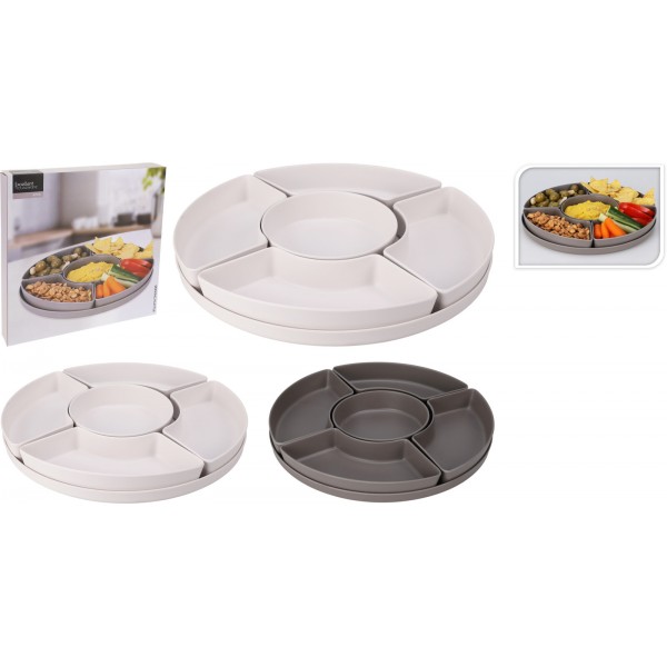 Praktisk serveringsbricka i 6delar, perfekt för att servera en mängd olika smårätter, snacks eller dipp till dina gäster. Välj mellan grå eller vit färg.