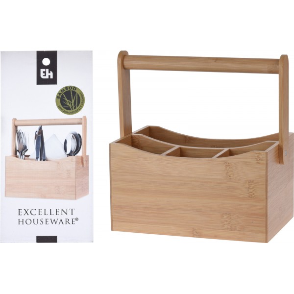 Bestickhållare i bambu med fyra fack och ett bekvämt handtag som gör den lätt att bära.